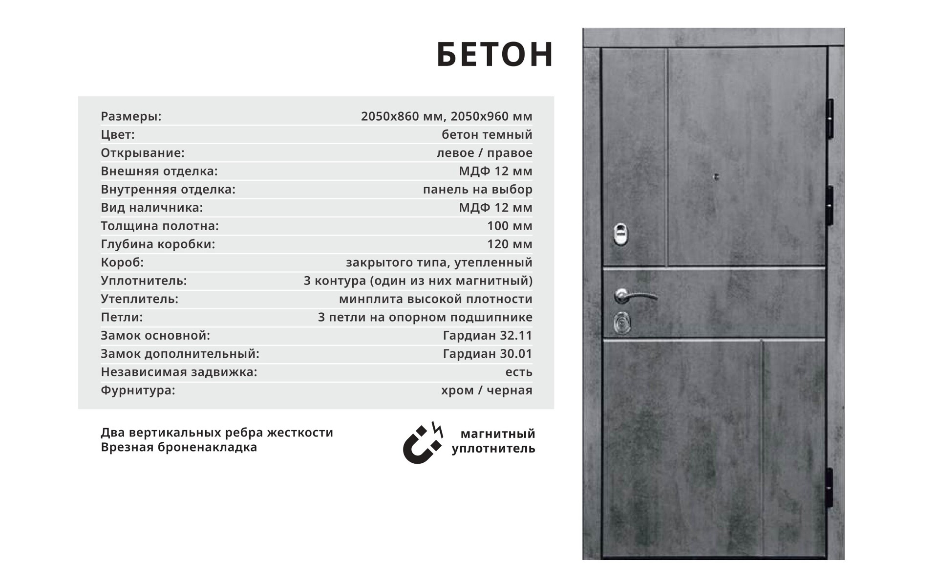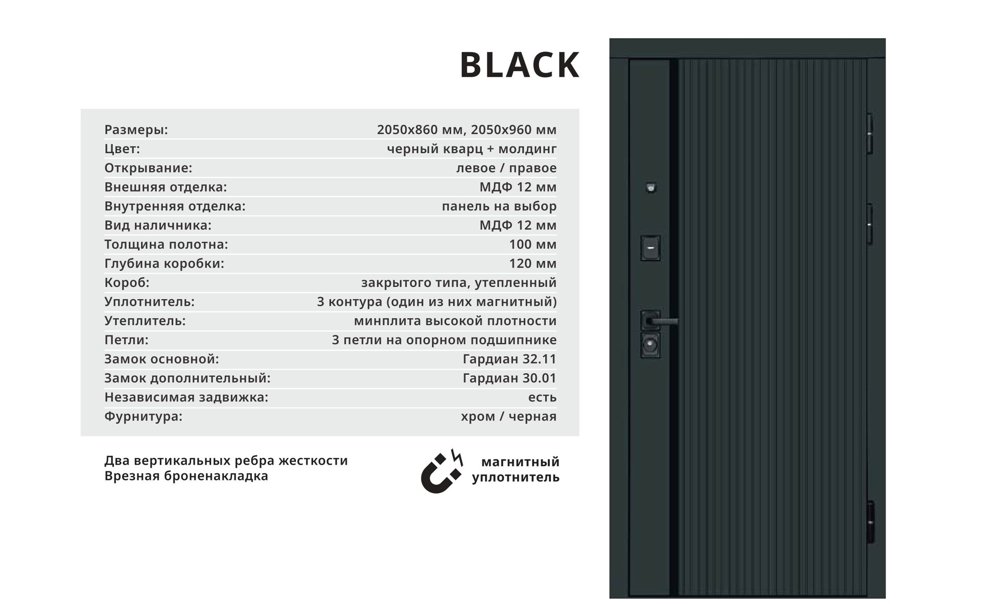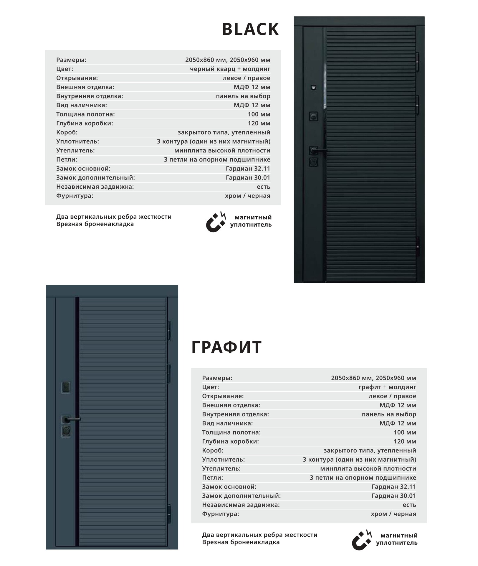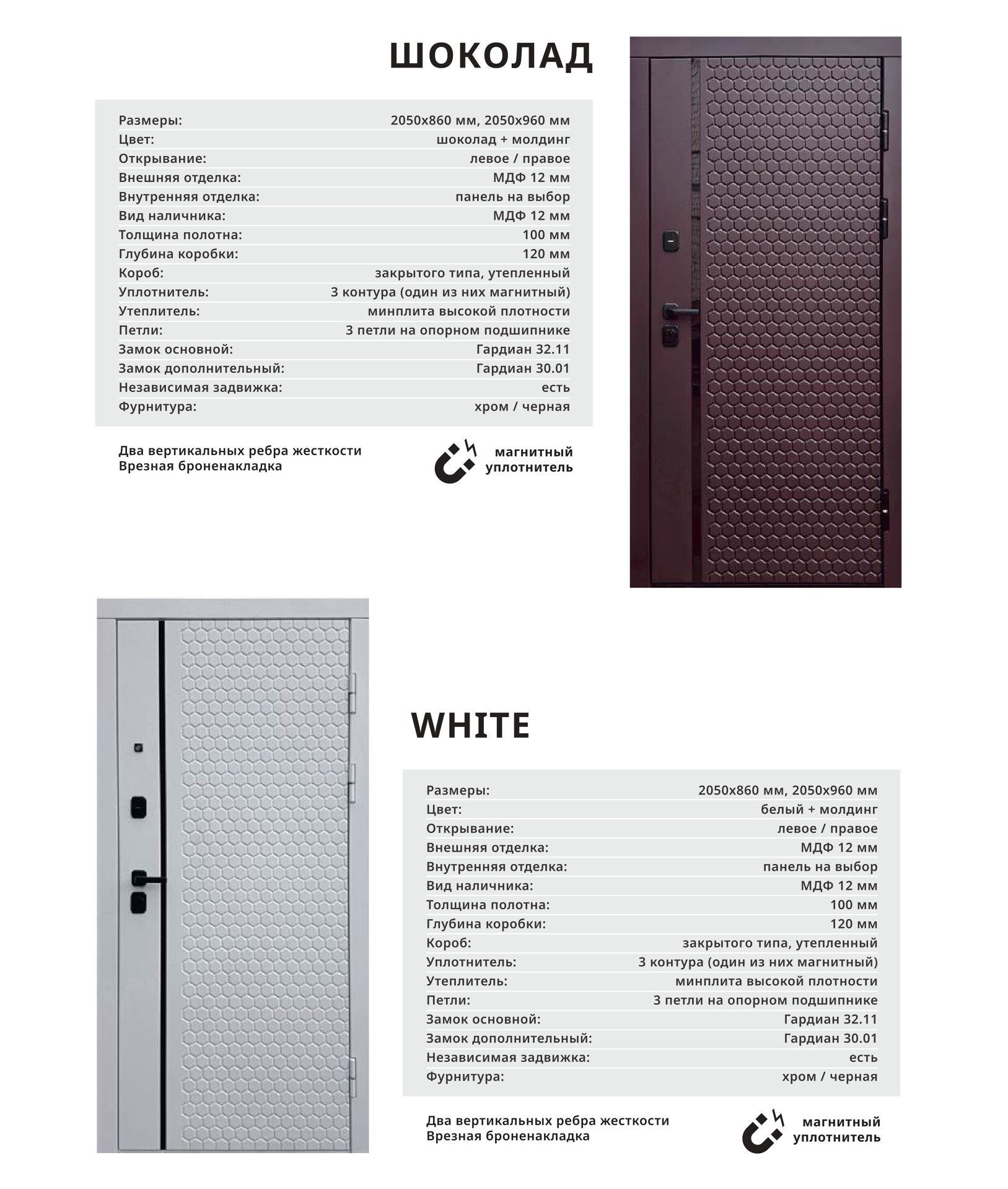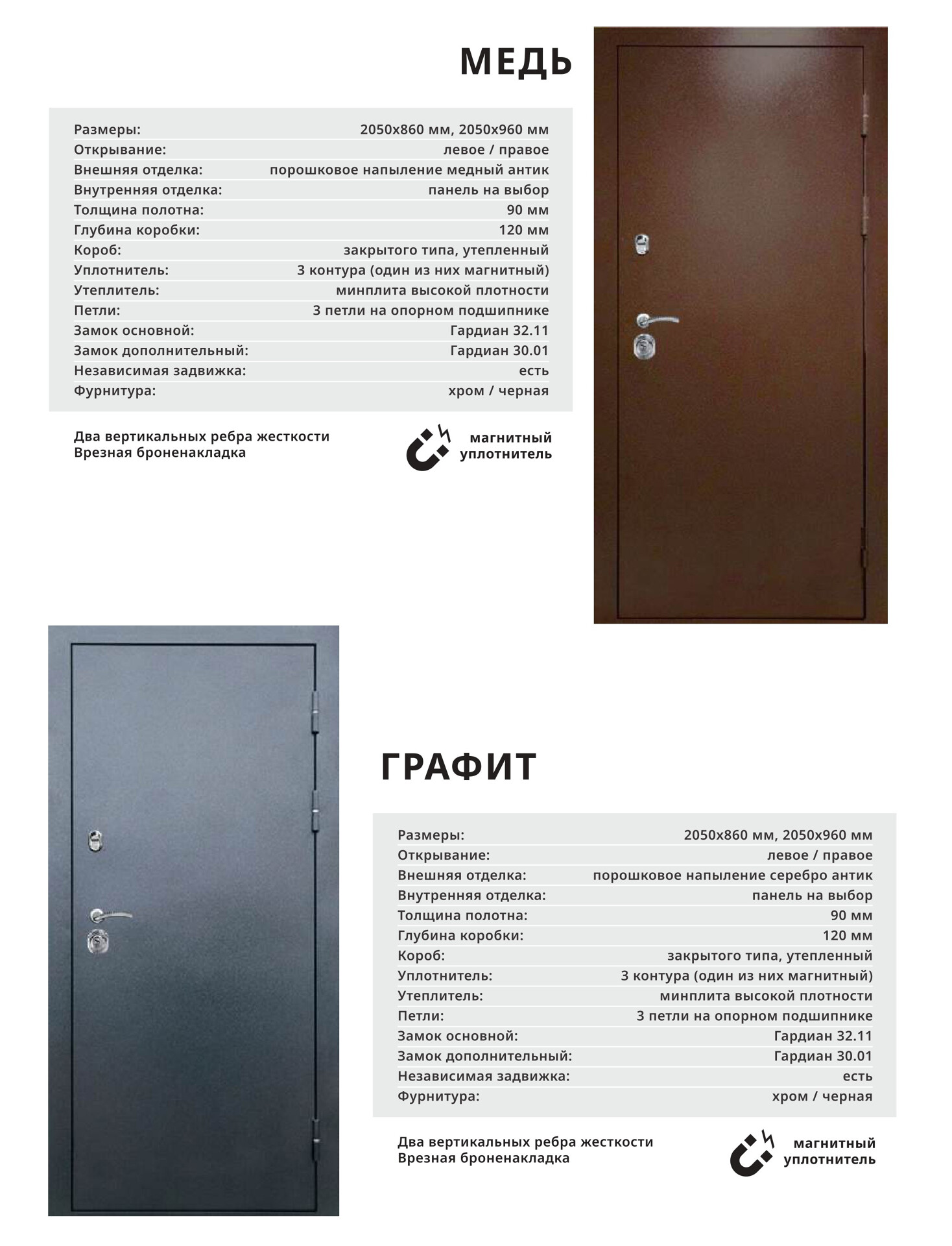 Толщина стали: полотно 1,8 мм, короб 2мм с терморазрывом;